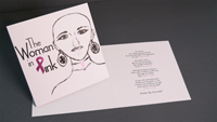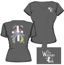 • Home of The Woman in Pink store offering: t-shirts, hats, totebags, scarves, jewelry and stationery